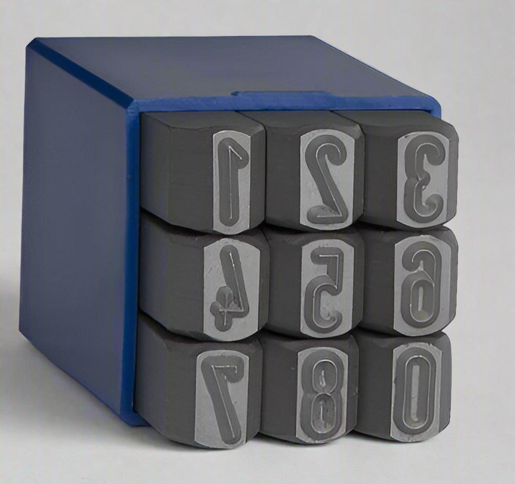 This stamp set includes 0-9 numbers. Each character is precision-machined from hardened tool steel, ensuring exceptional durability and stamping consistency.
